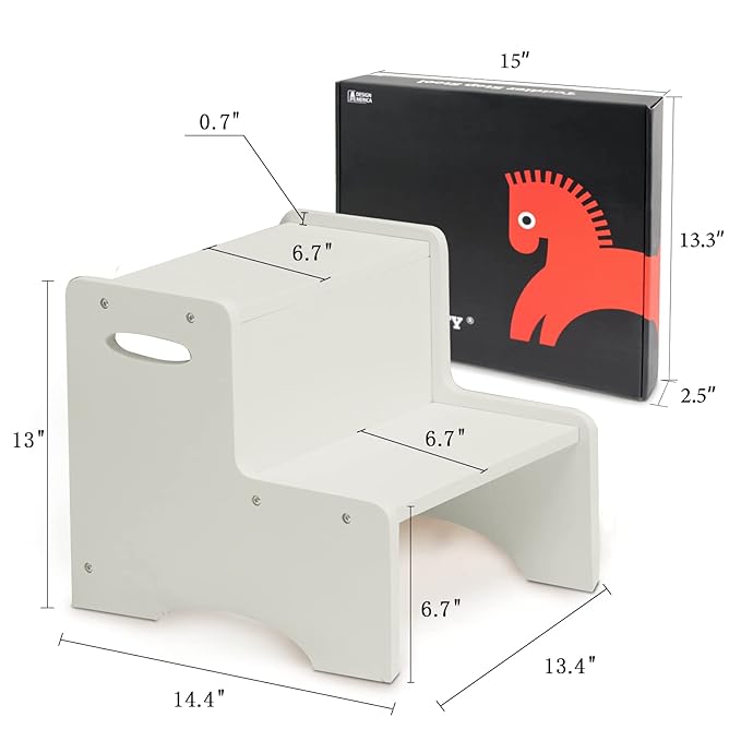 - DURABLE AND STYLISH: 13" x 14.4" x 13.4" size. With handles for easy transport, this practical and durable stool has a 200-lb weight limit, making it perfect for use by kids and adults alike. You can design your own exclusive step stool.