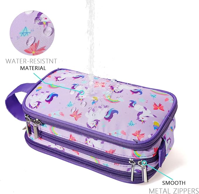 Kids Toiletry Bag for Girls, Travel Toiletry Bag for Little Young Girls Cosmetic Bag Makeup Bag Waterproof Hanging Wash Bag Toddler Toiletries, Unicorn Purple