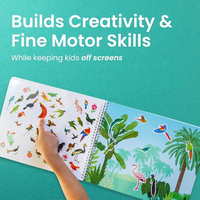 - What's included: Our Birds Sticker Book contains 500+ stickers to place on 12 unique scenes, and 12 coloring book pages all hand-drawn by our artists! Perfect for kids 3-5, the birds animal sticker book includes scenes with different bird friends on all sorts of exciting adventures around the world that will ignite the imagination of boys and girls!