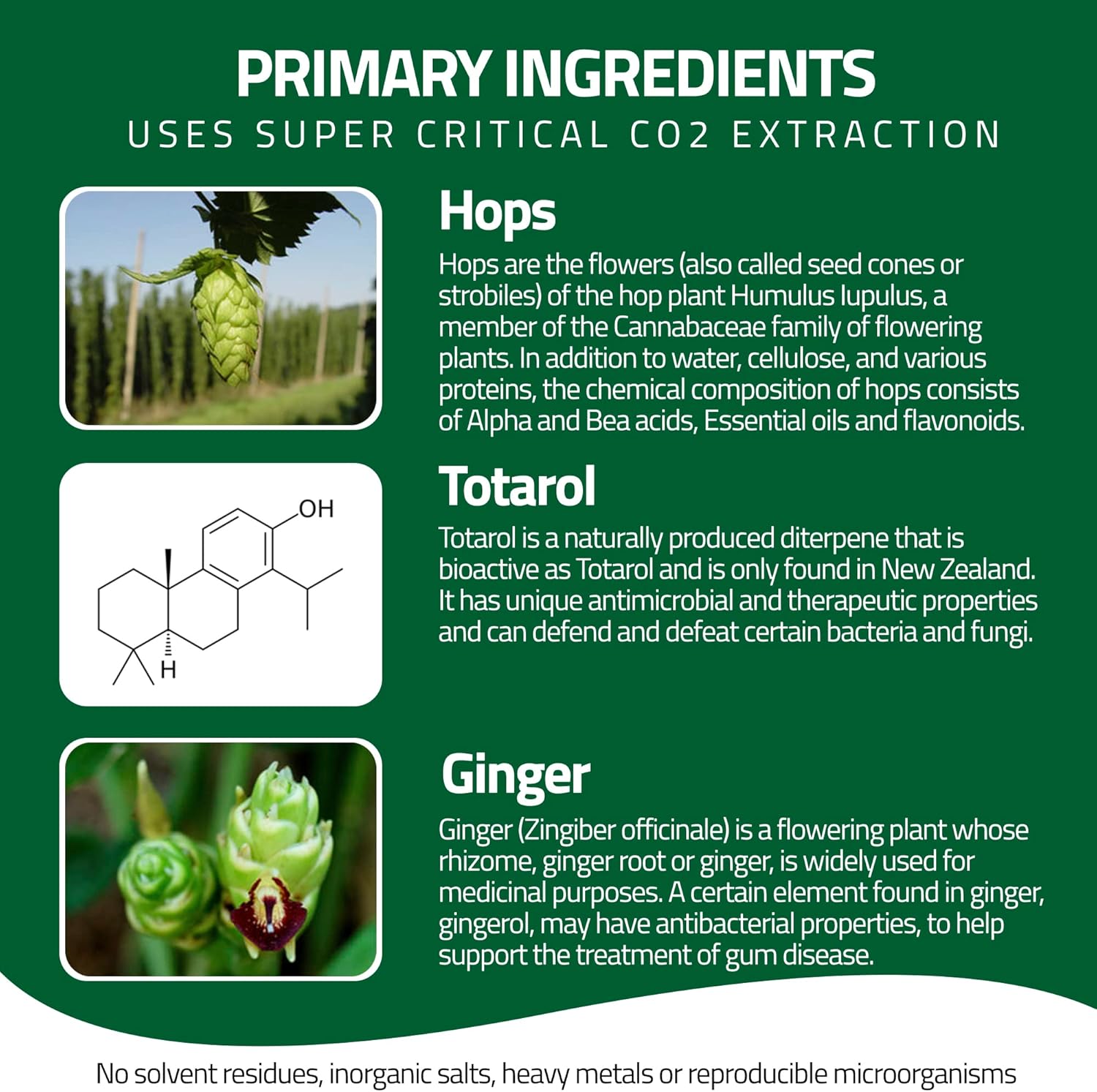- ONLY CLEAN INGREDIENTS - We manufacture in pristine New Zealand, one of the least polluted countries that has some of the strictest, biosecurity, safety and processing standards in the world! Ginger, Hops and Totarol are all sourced from New Zealand and then CO2 extracted. NOT from China.