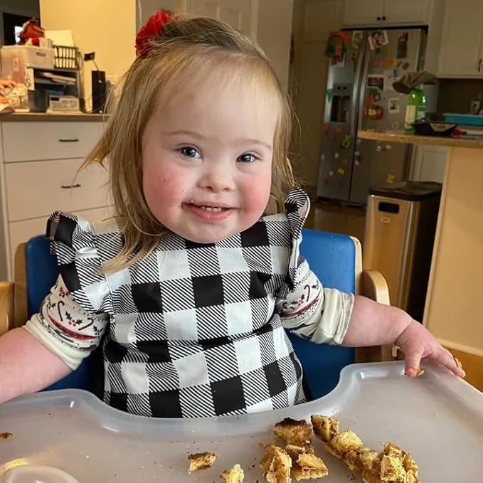 BapronBaby Flutter White Buffalo Plaid Bapron - No Neck Tie Safer Bib for Baby & Toddler - Soft Waterproof Stain Resistant - Machine Washable - Sz Preschool 3-5yrs