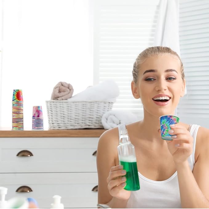 - Tie Dye Bathroom Supplies: you will receive 500 pieces of 2 oz tie dye paper cups in 5 distinctive colorful patterns, ample quantity to meet your daily usage and replacement needs, suitable for daily life to pour mouthwash water and medicines, which can be stacked, saving your counter space