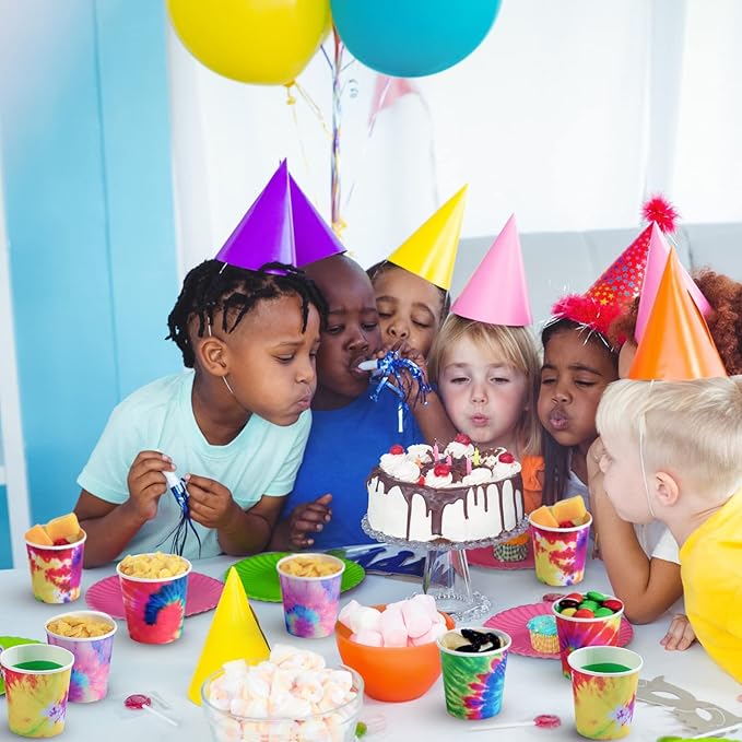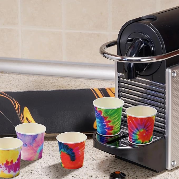 - Practical and Multifunctional: the tie dye party decorations kit is suitable as drinking cups, brushing cups, espresso cups, mouthwash cups, medical cups, sample cups for girls birthday parties, hippie tie dye party, rainbow party, baby shower, dessert buffet, picnics, cookouts or just fun filled daily meals, holding water, beverage, desserts, candy, chocolate and other snacks