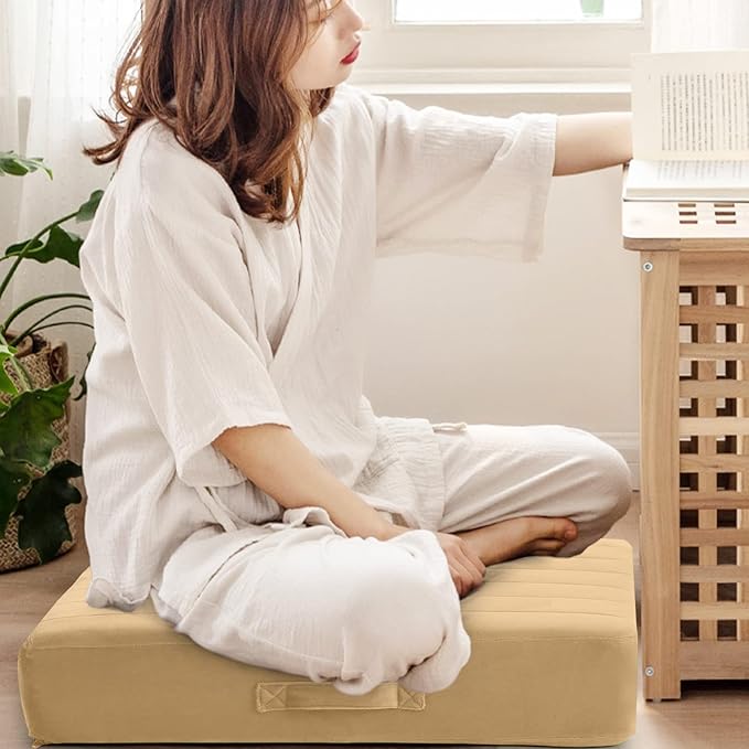 MeMoreCool Square Floor Pillow Seating for Adults Kids, Large Meditation Cushion Floor Pillow with Thick Foam & Soft Tufted Cover, Washable Big Pillow Seat Floor Cushion for Sitting Yoga 24" Khaki