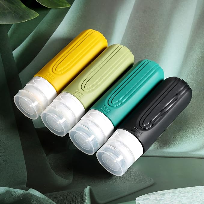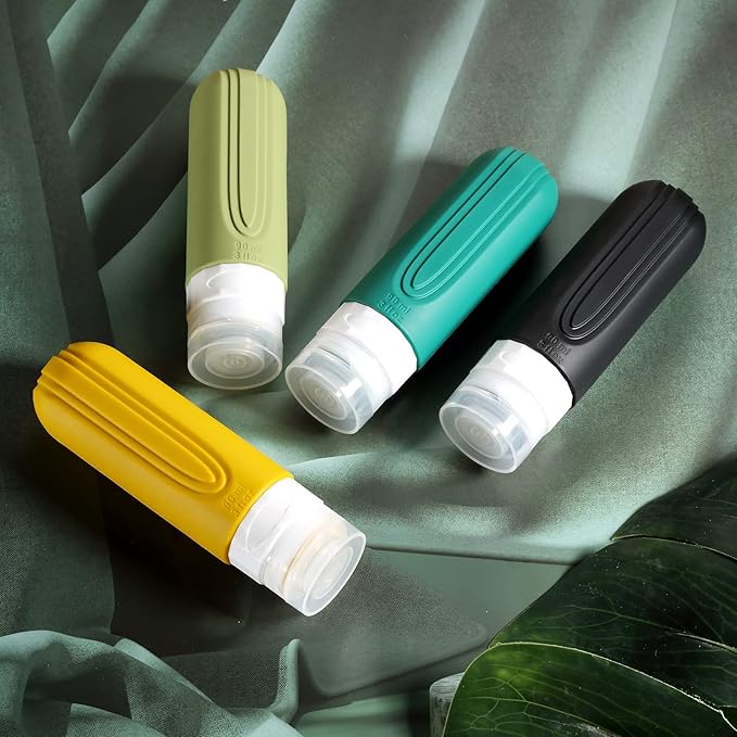 Travel Bottles for Toiletries, Tsa Approved 3oz Travel Size Containers BPA Free Leak Proof Refillable Liquid Silicone Squeezable Travel Accessories for Shampoo Conditioner Lotion (4 Pack)