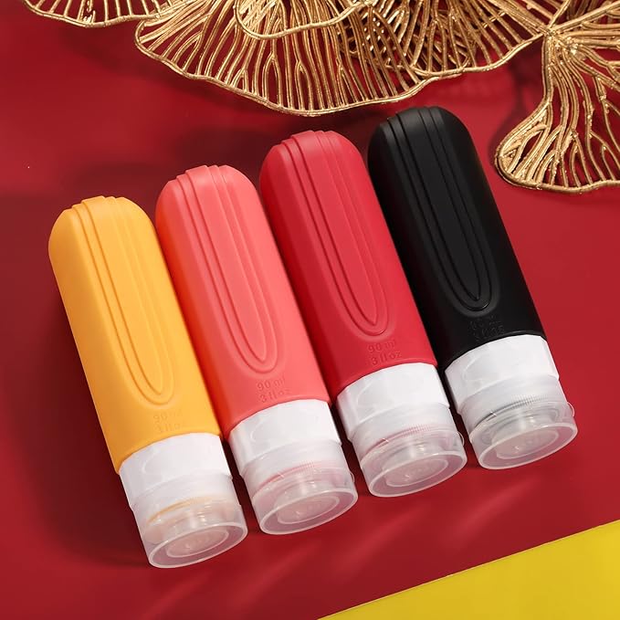 Travel Bottles for Toiletries, Tsa Approved 3oz Travel Size Containers BPA Free Leak Proof Refillable Liquid Silicone Squeezable Travel Accessories for Shampoo Conditioner Lotion (4 Pack)