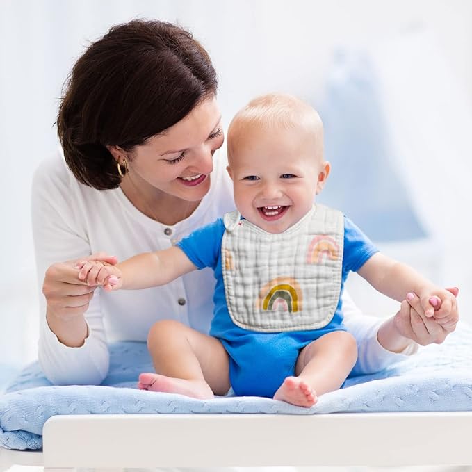 - Absorbent Bibs: Our baby bibs have 6 layers of soft cotton fabric with good absorbency to effectively absorb drool and drips. Keeps baby dry by preventing liquids from seeping into clothing and skin.