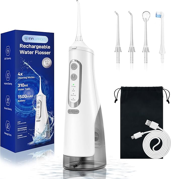 - Teeth Cleaning, Teeth Whiten and Gum Care: Infiwarden present you the 2023 upgraded unique pulse water dental flosser with high pressure water pulse function jetting high frequency strong water pressure to remove food residue and teeth plague hidden. Help you recover from bleeding gums, bad breath. Ideal solution for orthodontic brace and bridge users.