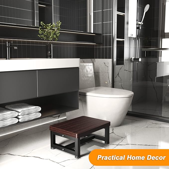 - 【Heavy Duty & Sturdy Construction】Wooden step stool is constructed by 1 INCH solid wood, which is waterproof, easy to clean, scratch-resistant, eco-friendly. Bed stepping stool with heavy-duty powder-coated, high-strength steel tubing is extremely strong, rust-resistant, can withstand up to 500 pounds, and will ensure years of trouble-free use