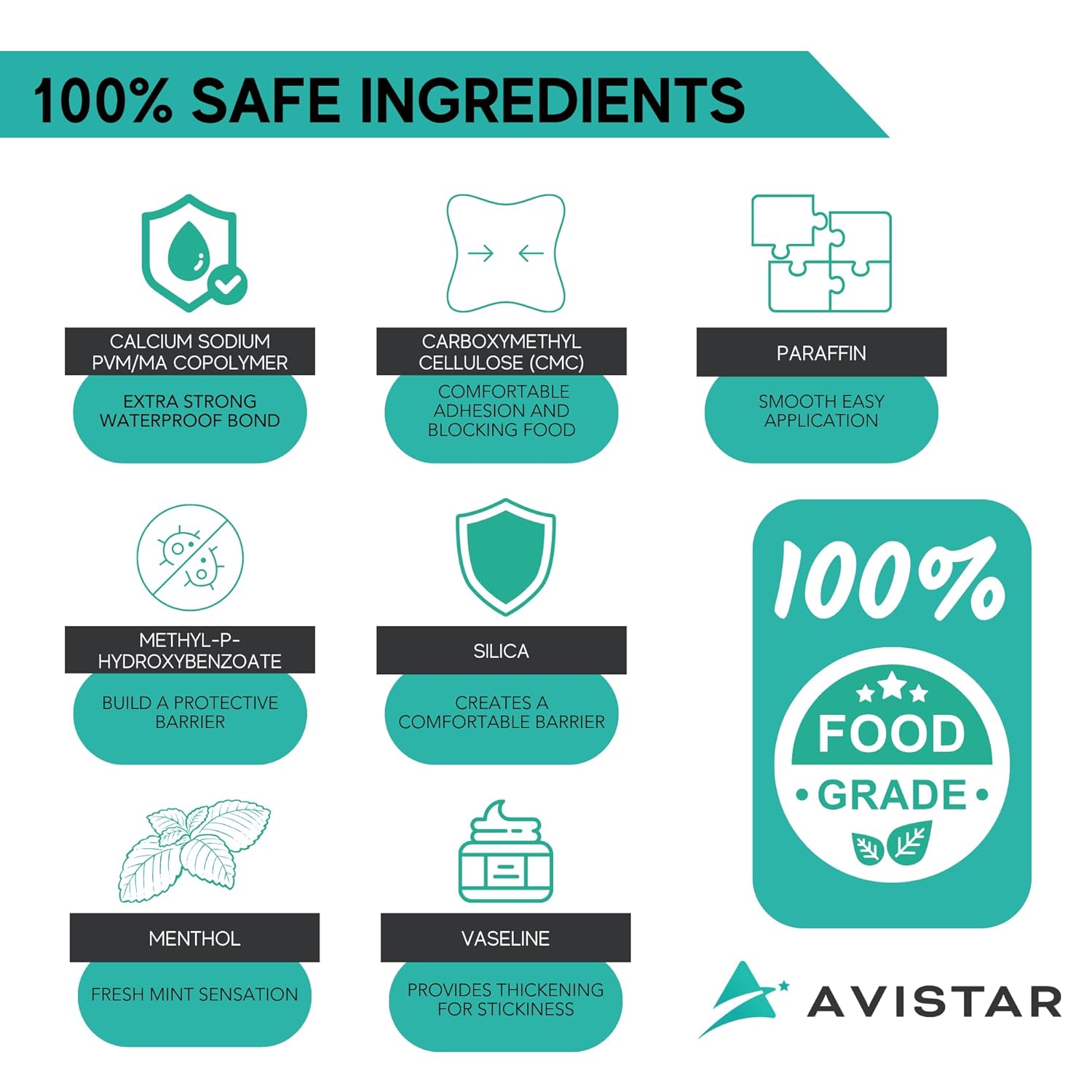 - EXTRA STRONG, NATURAL & COMFORTING: Enjoy an extra-strong hold for 8-12 hours with our organic dental adhesive paste. Made from food-grade, natural ingredients, it's the strongest zinc and fluoride-free composite on the market, offering a refreshing mint flavor and a comfortable, irritation-free experience.