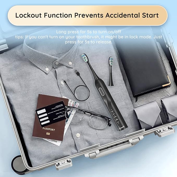 Sonic Electric Toothbrush - 5X More Effective Cleaning, 8 Brush Heads, 4 Modes, Low Noise Design for Adults