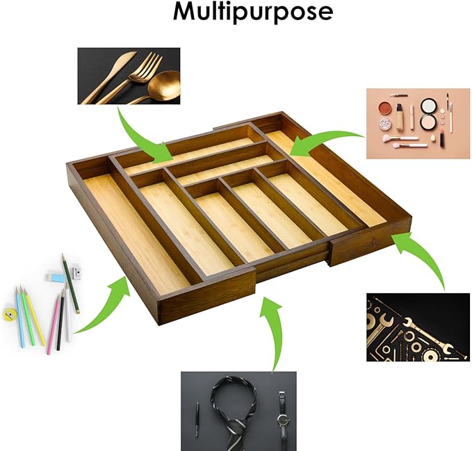 - Multifunctional drawer organizer - This can be used as a Kitchen utensil holder for kitchen utensils or kitchen utensils set, desk drawer organizer, spice drawer organizer, bathroom drawer organizer, and bamboo makeup organizer