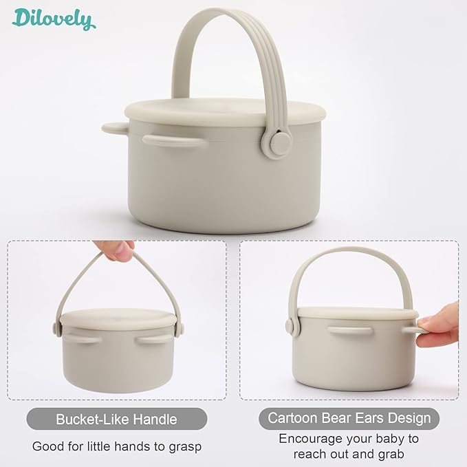 - SAFE FOR BABY: The Dilovely snack cups for baby is made out of food grade silicone, free from BPA, BPS, PVC, lead & phthalates. This kids snack container thoroughly tested by a third-party lab. Safe baby essential for self-feeding.