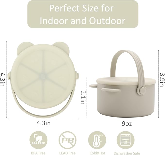 - EASY CLEAN: The snack bowls for toddlers is easily cleaned by hand or a dishwasher. We recommend cleaning the snack cups with lids with unscented, natural detergent since Silicone can absorb scents.