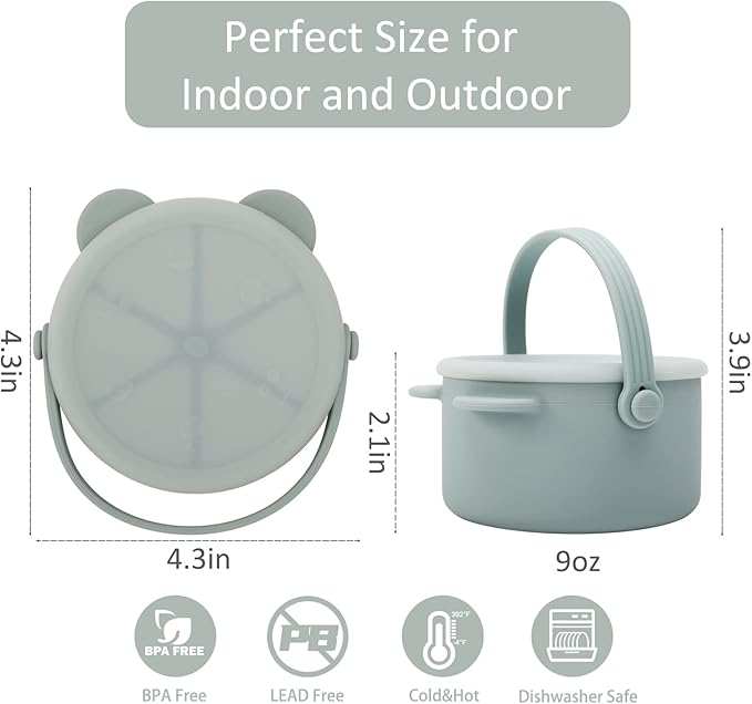 - EASY CLEAN: The snack bowls for toddlers is easily cleaned by hand or a dishwasher. We recommend cleaning the snack cups with lids with unscented, natural detergent since Silicone can absorb scents.