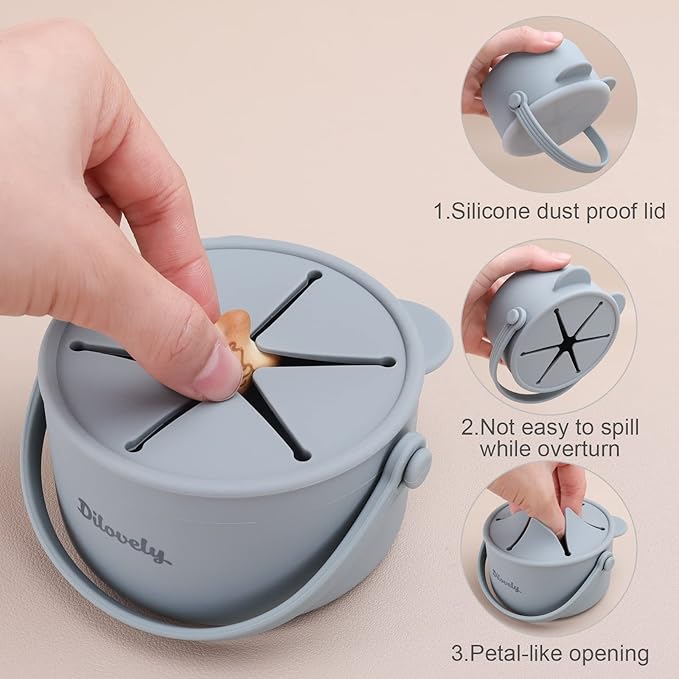 - SAFE FOR BABY: The Dilovely snack cups for baby is made out of food grade silicone, free from BPA, BPS, PVC, lead & phthalates. This kids snack container thoroughly tested by a third-party lab. Safe baby essential for self-feeding.