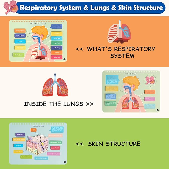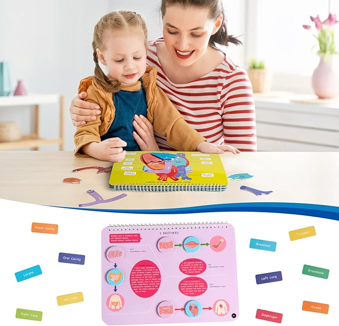 Freebear Montessori Busy Book for Kids, Human Body Anatomy Book for Toddlers, Preshool Kindergarten Learning Activities, Autism Sensory Toys, Gifts for Girls and Boys 4 5 6 7 Years - Human Body System