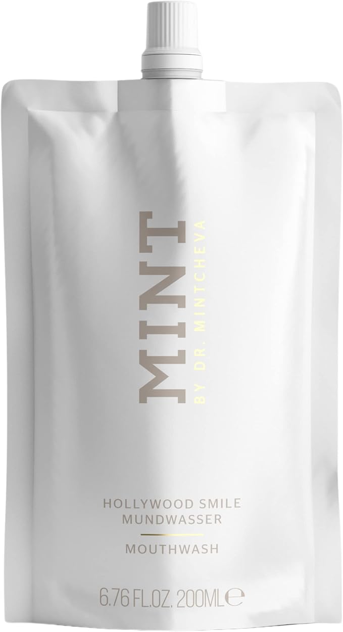Mint Hollywood Smile Mouthwash Refill – 2-Phase Whitening Formula with Hydrogen Peroxide 0,1% & Sodium Polyphosphate – Alcohol-Free – Vegan – 6.76 fl oz