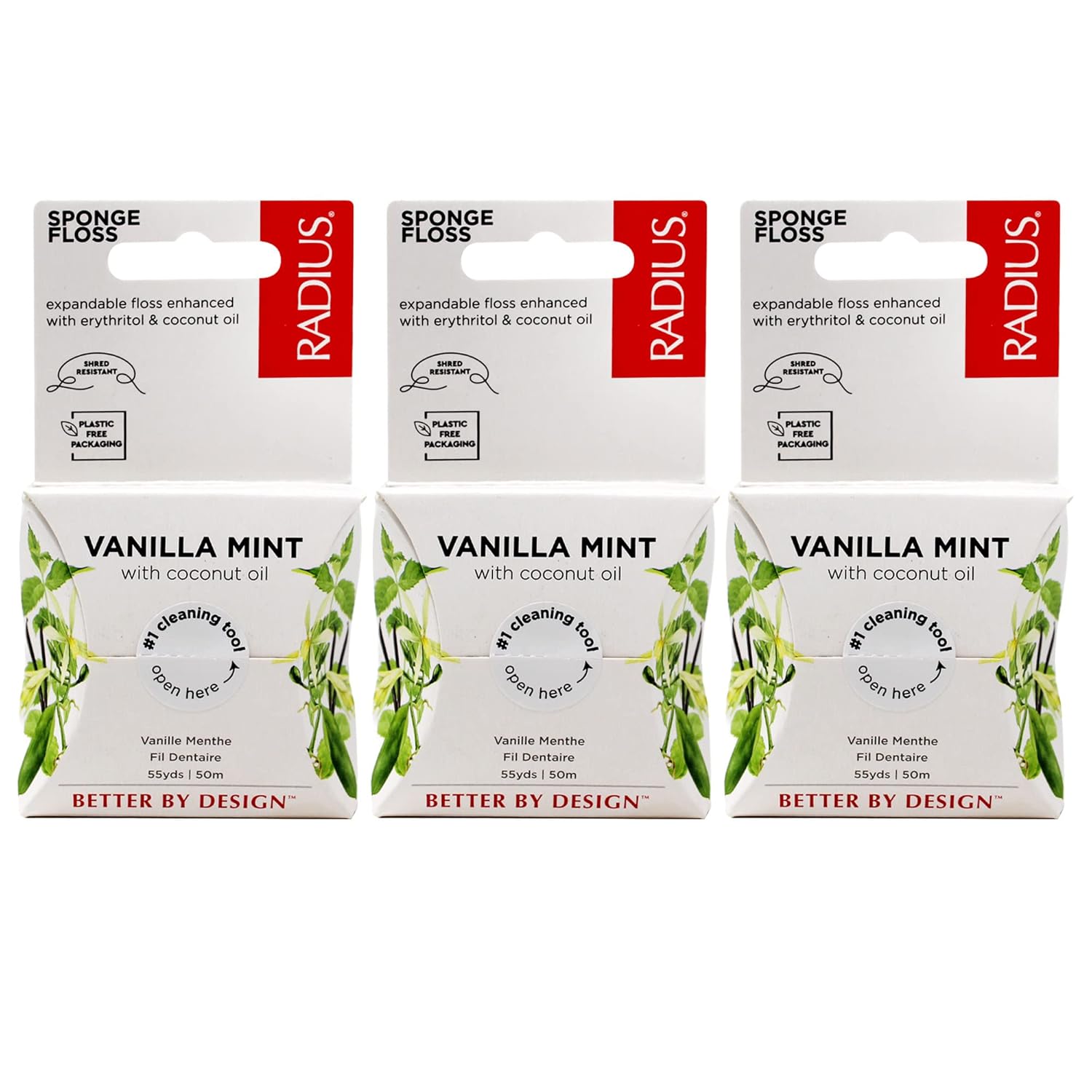 RADIUS Vanilla Mint Dental Floss 55 Yards Vegan & Non-Toxic Oral Care Boost & Designed to Help Fight Plaque Clear - Pack of 3