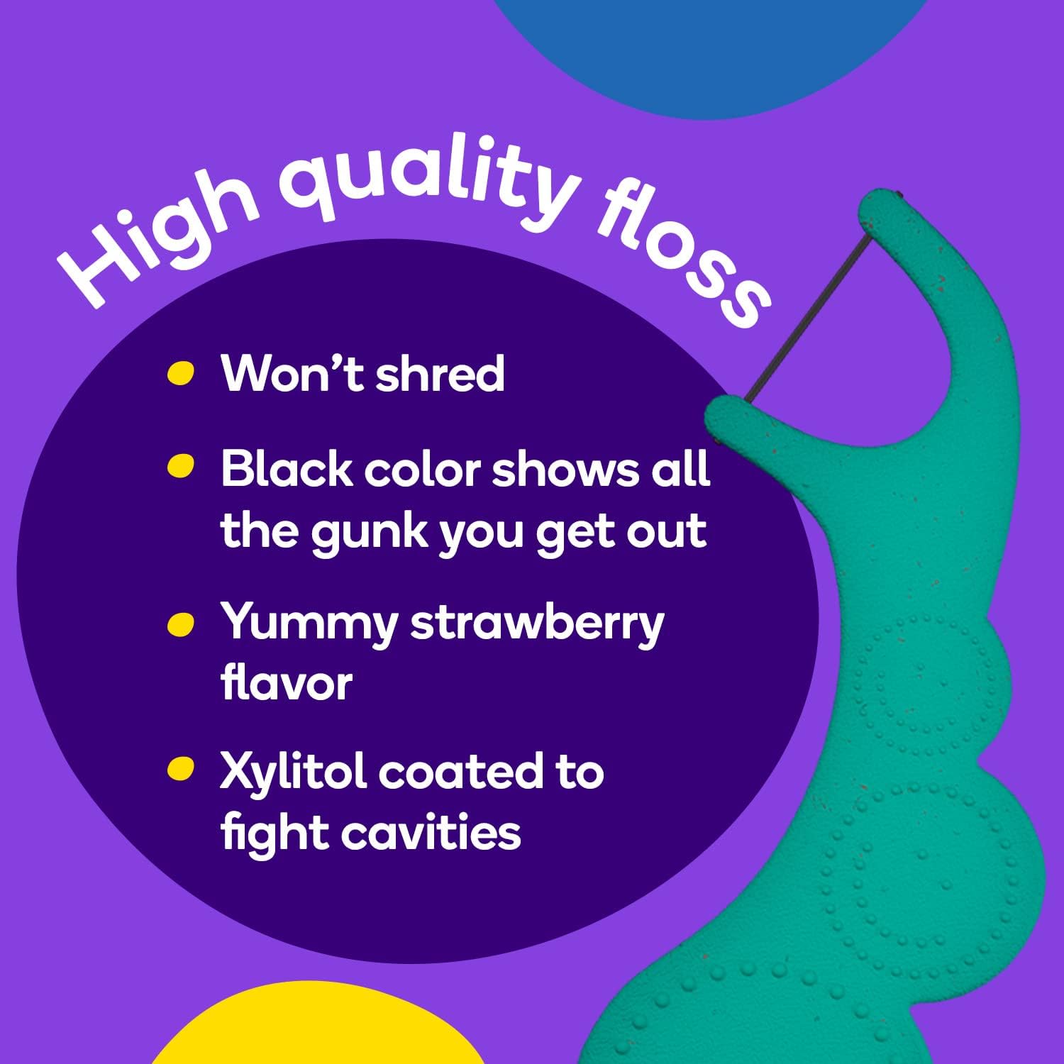 - ππ¨π‘ πππ¦πππ‘π¦ & πππππππ’π¨π¦ ππππ©π’π₯: Blue, green, and pink floss picks with smiley face grips and an irresistible strawberry flavor make learning to floss fun! Helps kids develop healthy flossing habits!