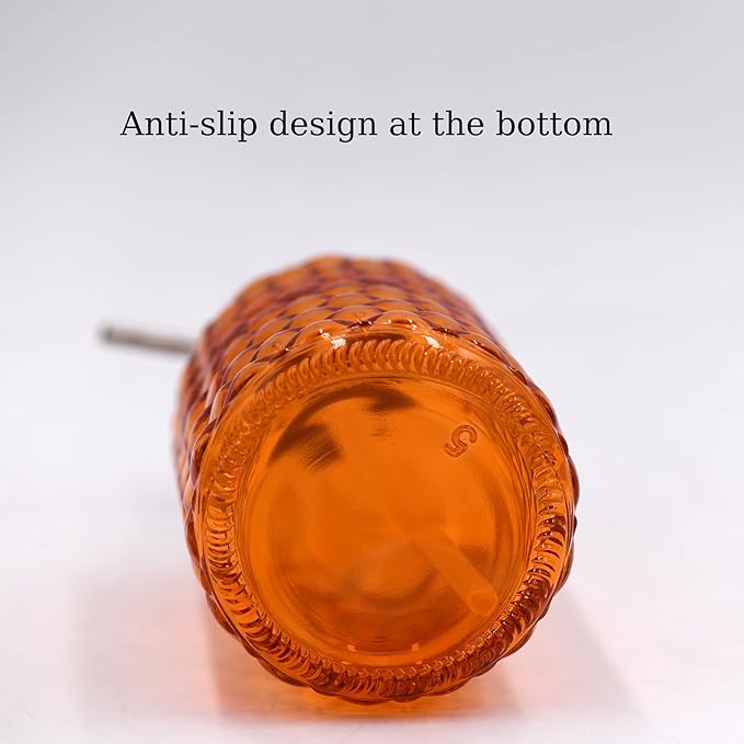 16 oz Diamond Pattern Glass Soap Dispenser, Kitchen and Bathroom Refillable Soap Dispenser with Rust Resistant Stainless Steel Pump for Hand Soap, Lotion Glass Liquid Dispenser (Orange)