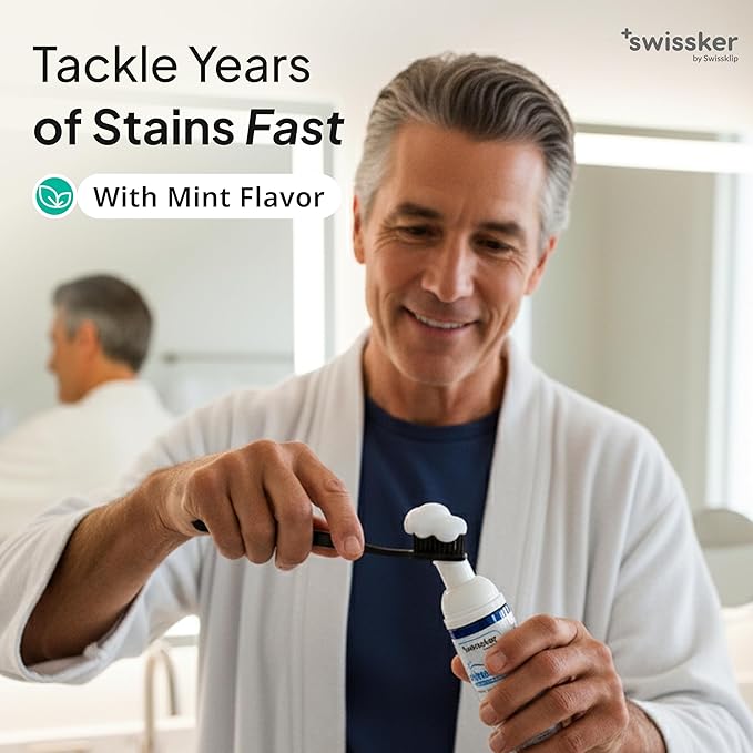 - Swissklip tooth whitening mousse offers a solution for whitening teeth with deep stains. Using teeth whitener regularly results in a brighter and more youthful smile. This teeth whitening for sensitive teeth foam provides professional level results with safe at-home usage