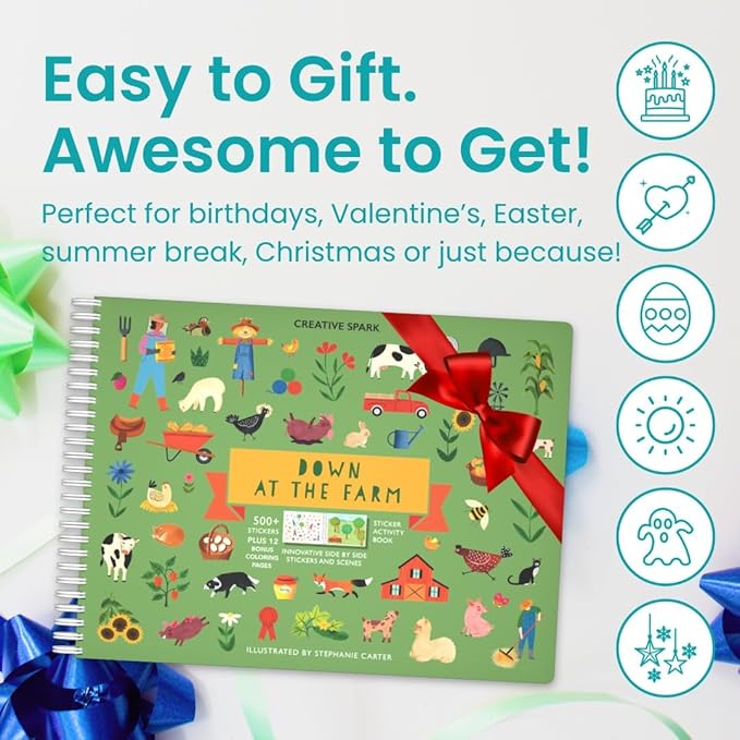 - Gifts for kids: The farm animal-loving child in your life will jump for joy when opening this gift! Grandparents love our Mom and Dad-approved learning activity books for boys and girls and all the entertainment they bring. Farm animal stickers are great rainy day activities and make the perfect gifts for birthdays, holidays, Montessori classrooms, and for make-believe enthusiasts ages 4-8.