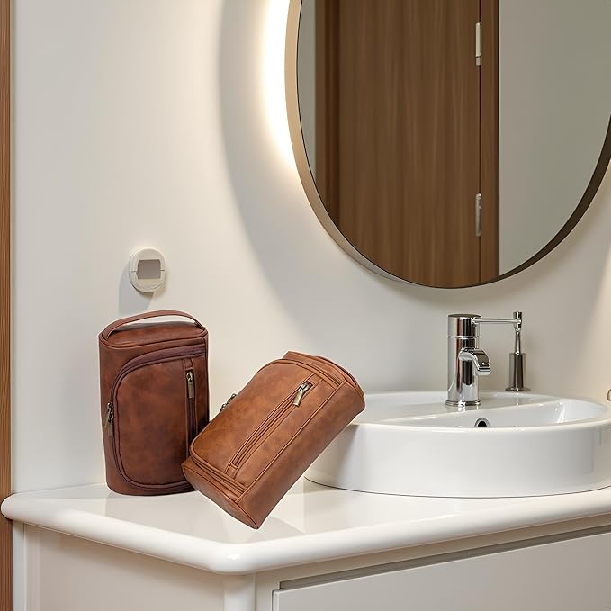 - ใ๐๐ฎ๐ฅ๐ญ๐ข-๐๐ฎ๐ง๐๐ญ๐ข๐จ๐ง๐๐ฅ ๐๐๐ฌ๐ข๐ ๐งใCrafted from water-resistant PU Leather material, the dopp kit is both easy to clean and effective at protecting contents from splashes. The Cosmetic Bag interior includes elastic straps to secure bottles upright to keep toiletries and shaving supplies neatly organized.