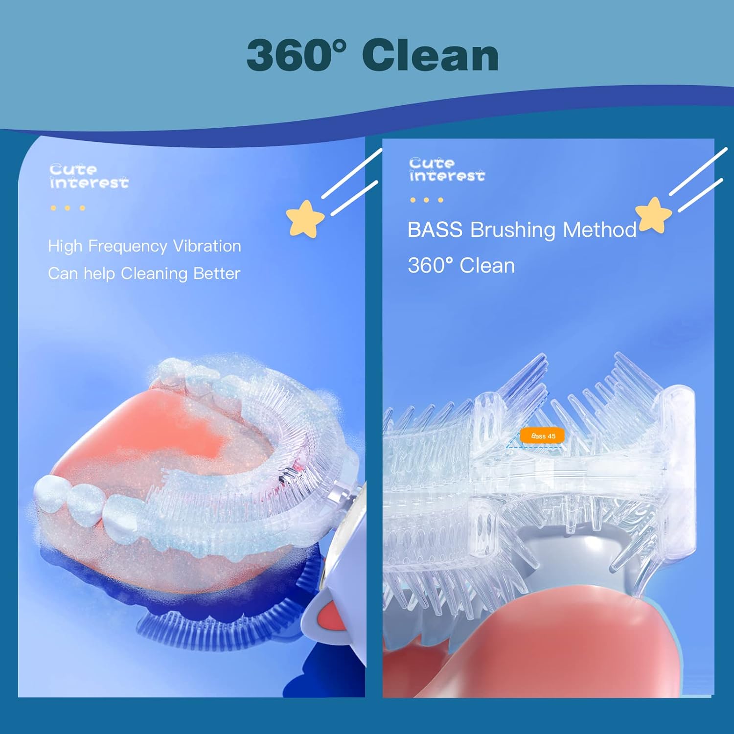 - 💧IPX7 WATERPROOF & 14 Days RECHARGEABLE BATTERY:The kids u shape toothbrushes are designed with IPX7 waterproof seal, the body is washable and easier to clean. The package comes with a USB charging cable, the LED lights up when charging, and it lasts up to 360 hours with 3 hours charge, making it quick and easy to use at home or travel.