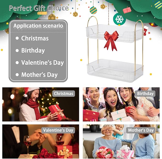 - Large Capacity: This organizer 2 tier measures 11.81''D x 6.7''W x 13''H, 3 tier measures 11.81''D x 6.7''W x 18.9''H (Please measure your countertop space before purchase). Perfect for organizing skin care products, cosmetics, perfume or anything you like, save space and increase storage capacity