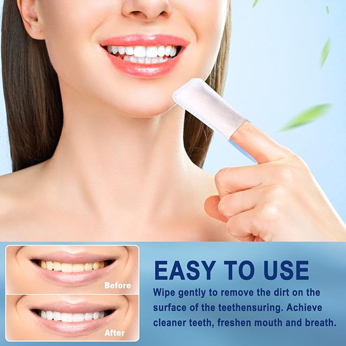 Mint-Flavored Oral Finger Wipes Teeth Whitening Wipes Oral Cleaning Wipe(Dark Blue, 60 Pcs)