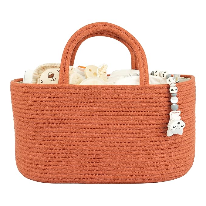 Large Baby Diaper Caddy Organizer for Girl Boy Rope Nursery Storage Bin Basket Portable Holder Tote Bag for Changing Table Car Travel Baby Shower Gifts Registry Must Haves Rustic