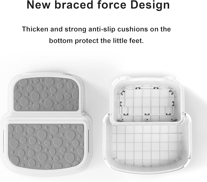 - SUPERIOR STABILITY & HOLDS 200 LBS: Crafted from reinforced, non-toxic plastic, our Toddler Step Stool is designed to support up to 200 lbs for absolute safety. The non-slip rubber feet ensure the Step Stool for Kids stays firmly in place on bathroom or kitchen floors, providing steady support for your growing child.