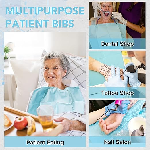 - Wide usage: These dental bibs are widely used in dental clinics, tattoo parlors, beauty salons, makeup, eyelash care, nail art, and daily use at home. A good choice for orthodontics, DIY, ink shop, personal care. These dental bibs provide comfortable and clean protection. At the same time, it can also be used to clean the work area
