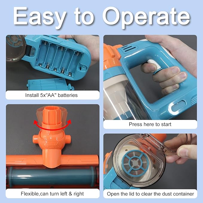 - Easy and Independent Operation: Our kids toy vacuum features a kid-friendly release and removal system, making it easy for children to replace accessories and move around independently with this toddler vacuum cleaner set.