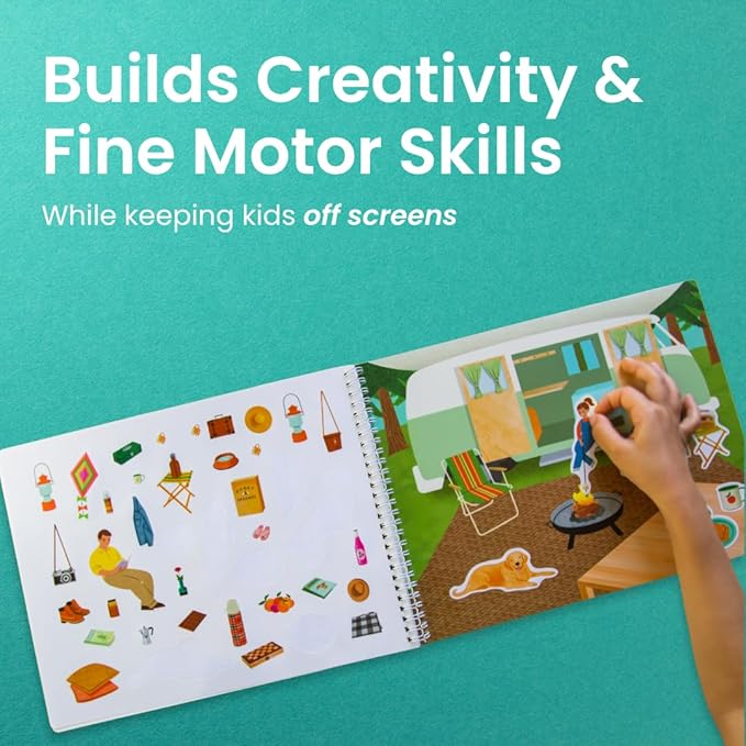 - On the go fun: Keep kids busy while traveling with independent, quiet, screen-free fun. Our lay-flat sticker activity books make the best plane travel essentials for toddlers, create the perfect mess-free crafts for car road trips with little ones, and keep kids entertained at restaurants. Leave the tablet at home and let their imaginations soar on your next family adventure.
