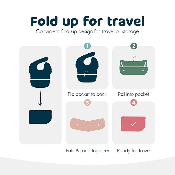 - MESS-PROOF MEALTIME: Our mess-proof baby food bibs feature a deep catch-all pocket that captures crumbs and spills, keeping clothes and tables clean. Made with lightweight, water-repellent fabric, these waterproof bibs make everyday meals simpler and cleaner.