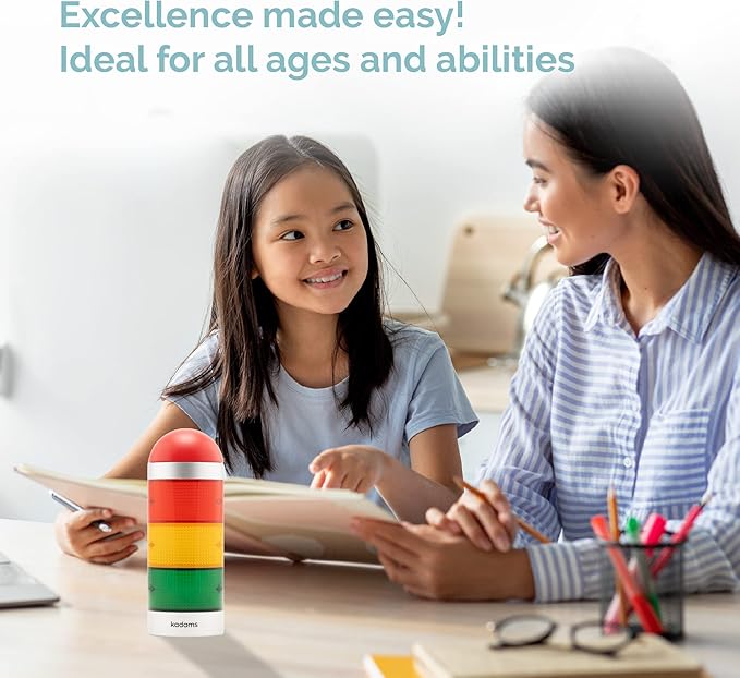 - 【Innovative Traffic Light Gamification】 The stoplight visual timer with pre-alarm function, featuring red, yellow, and green lights, gamifies time management, rendering it both engaging and visually intuitive. It effectively conveys "Let's Go," "Nearly There," and "Stop," enhancing user-friendliness.