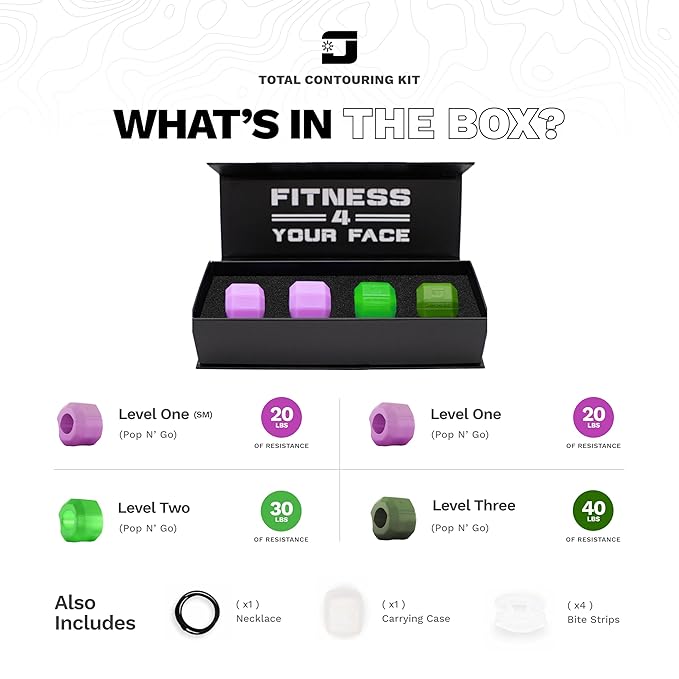 Jawzrsize Jaw Exerciser for Women - Double Chin Reducer, Facial Toner, Neck Exerciser for Younger and Healthier Look Helps Reduce Stress and Cravings Jawline Trainer (Total Contouring Kit)