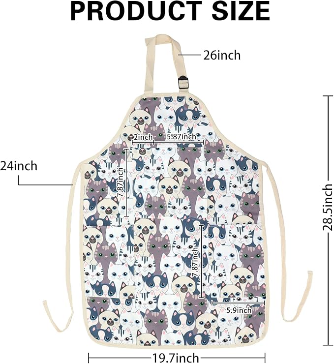 - ADJUSTABLE APRON: The apron has an adjustable neck strap, can easily fit all different heights. Generous 23" tie length (each side), 20.7" width x 28.5" long, for suitable and comfortable length. Suitable for age 8-12 years