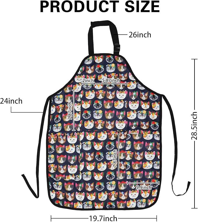 - ADJUSTABLE APRON: The apron has an adjustable neck strap, can easily fit all different heights. Generous 23" tie length (each side), 20.7" width x 28.5" long, for suitable and comfortable length. Suitable for age 8-12 years