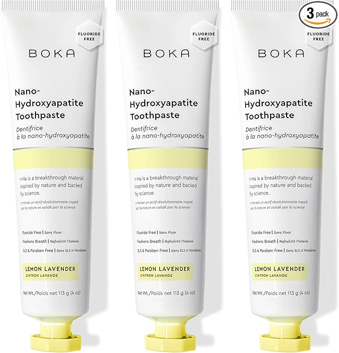 Boka Fluoride Free Toothpaste, Nano Hydroxyapatite Toothpaste, Appropriate for Sensitive Teeth - for Adult, Kids Oral Care - Lemon Lavender Flavor, 4 Fl Oz 3Pk US Manufactured