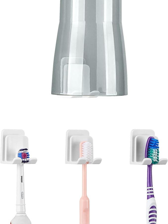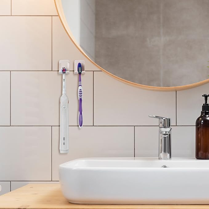 4 PCS Toothbrush Holder Wall Mounted with Cup Holder for Bathroom, Self Adhesive Toothbrush Storage Organizer for Shower, Mini Toothbrush Hanger Rack for Dorm, Cabinet