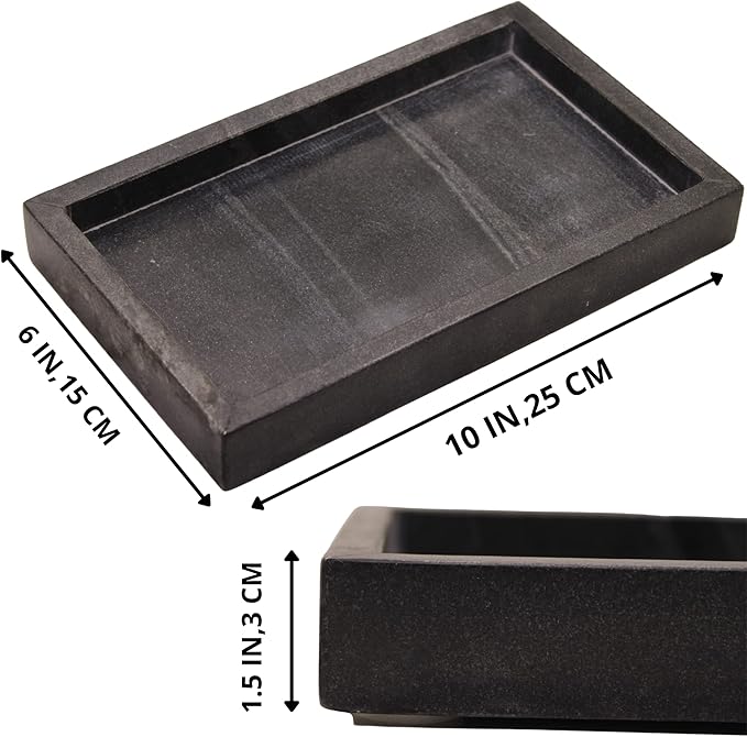 Natural Black Marble Tray for Bathroom | Kitchen | Vanity | Desktop, Stone Organizer for Coffee Table, Dresser, Nightstand, Candles, Soap, Towel, Plant, Jewelry (10" x 6"), Rectangular