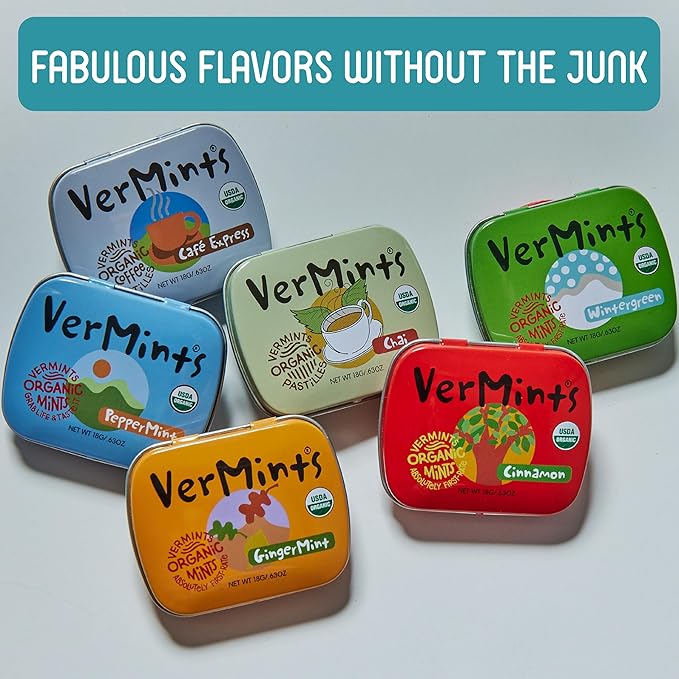 - GRAB LIFE & TASTE IT - Inside every tin is a heartfelt, headstrong commitment to 100% organic mints and pastilles that wow! We ditched all the gross, health-harming, chemically modified stuff with Gluten-Free, non-GMO, Nut-Free, vegan, and Kosher goodness.
