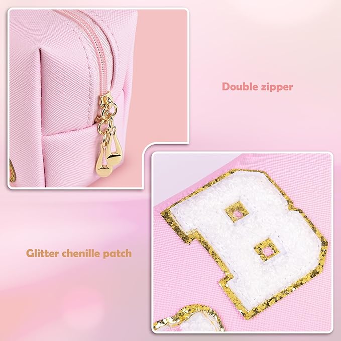 • 【Personalized Initial Patch Design】Elilier makeup bag boasts a gold glitter chenille patch that is not only stylish but also skin-friendly and comfortable to touch. The minimalist design adds a touch of fashion and cuteness to your daily routine, leaving you feeling vibrant and upbeat.