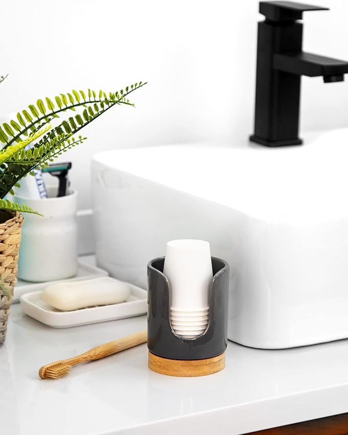 Ceramic Bathroom Cups Dispenser - 3 oz Disposable Paper & Plastic Bathroom Cups Holder - Mouthwash Cups Dispenser for Bathroom, Guest Toiletries, Countertop, Coffee - BPA Free (2 Pack)