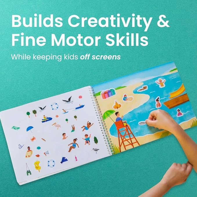 - Learn through play: Kids build fine motor skills, explore spatial awareness, and strengthen hand-eye coordination as they peel and stick stickers onto colorful scenes! Engaging in conversations about the sticker book characters will help imaginations run wild & encourage make-believe and pretend that can foster bonds between you and your child. Go ahead - play on!