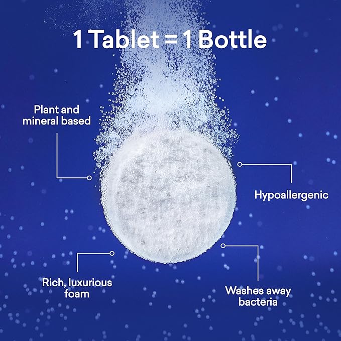 - HOW IT WORKS. Fill your bottle with water to the half-round symbol or line, and drop in a tablet. Allow the tablet to fully dissolve to make 9oz of rich Foaming Hand Soap.