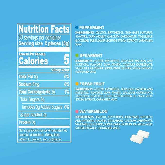 - LOWER CALORIES—We have successfully reduced the calorie content by incorporating 30% calorie-free erythritol into our sweeteners. As a result, you can enjoy our gum guilt-free and share it with others.
